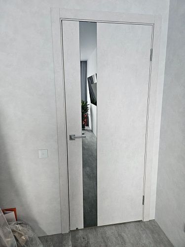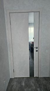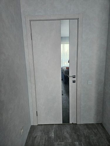 Дверь ПО EXZ 10E Бетон лайт зеркало графитовое из Экошпона COVERFLEX (Двери Нева) в Волхове с установкой и доставкой