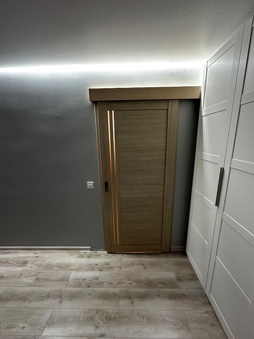 ПО QuLine 8-3 Беленый дуб стекло белое раздвижная с установкой "под ключ" в Волхове